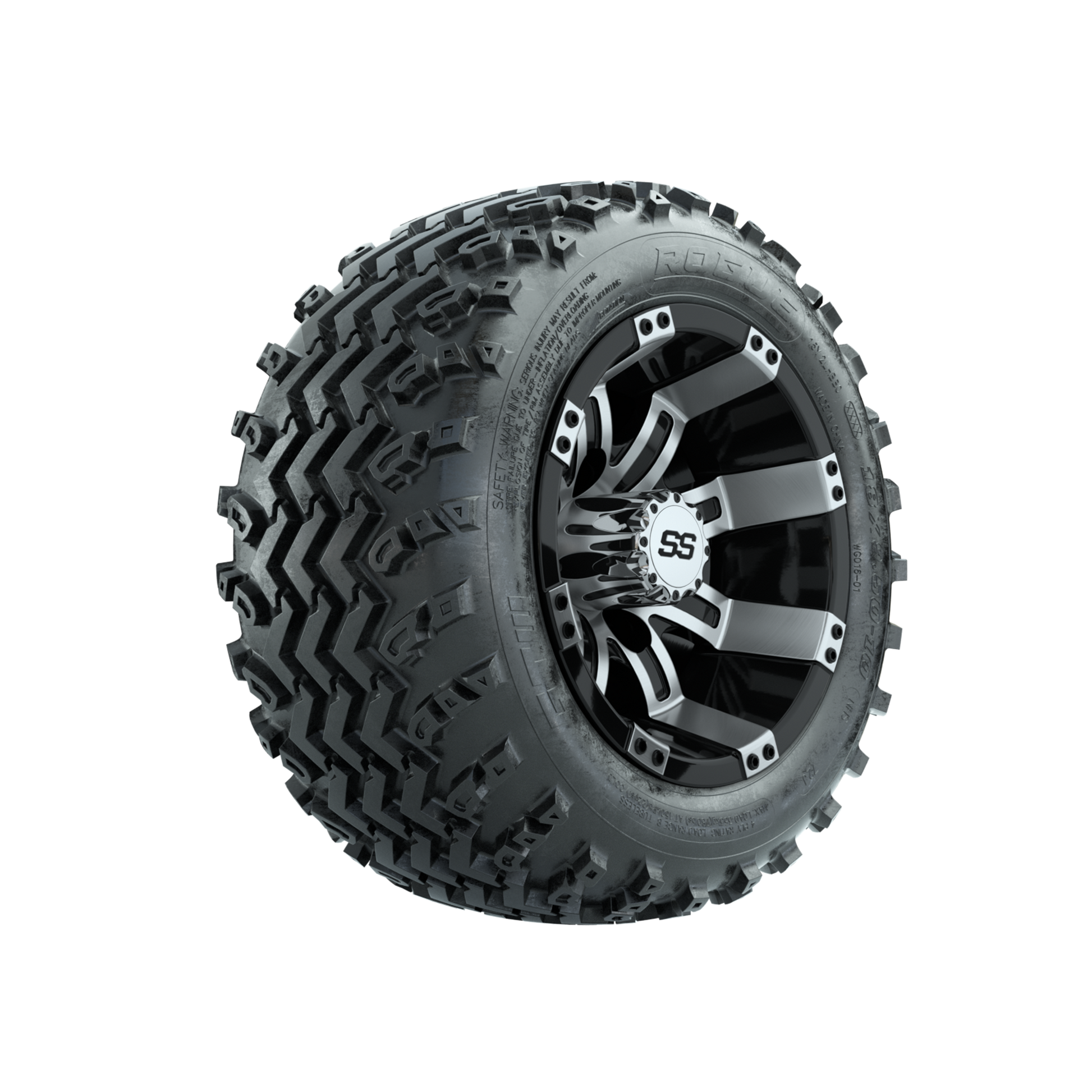 | Product Description: | A set of (4) 10-inch GTW-Tempest Machined/Black golf cart wheels Mounted on 18x9.50-10 Rogue All-Terrain Tires Tread Classification: All-Terrain Full Tire & Wheel Combo Includes: (4) 10x7 GTW-Tempest Wheels / Machined/Black finish / Offset: 3:4 (ET -.25) (4) 18x9.50-10 GTW Rogue All-Terrain Tires / Tire is approx. 18- tall (4-Ply) (4) Center caps Please Note: All Wheels are 4 on 4 Hole / Lug Pattern unless otherwise specified. Tech Tips: No Lift Kit Required for This Tire & Wheel Combo (Tire is approx. 18- OD) Please Check and Adjust PSI in Tires Before Operation (Recommended Inflation Can Be Found on Sidewall of Tire) Tire & Wheel Combos are mounted and Inflated Before Shipping, Free of Charge All Wheels Have a lug pattern of "4x101.6mm" Lug Nuts Sold Separately: Standard Chrome Lug Nuts #LUG4S Metric Chrome Lug Nuts #LUG4M (Yamaha Models) |