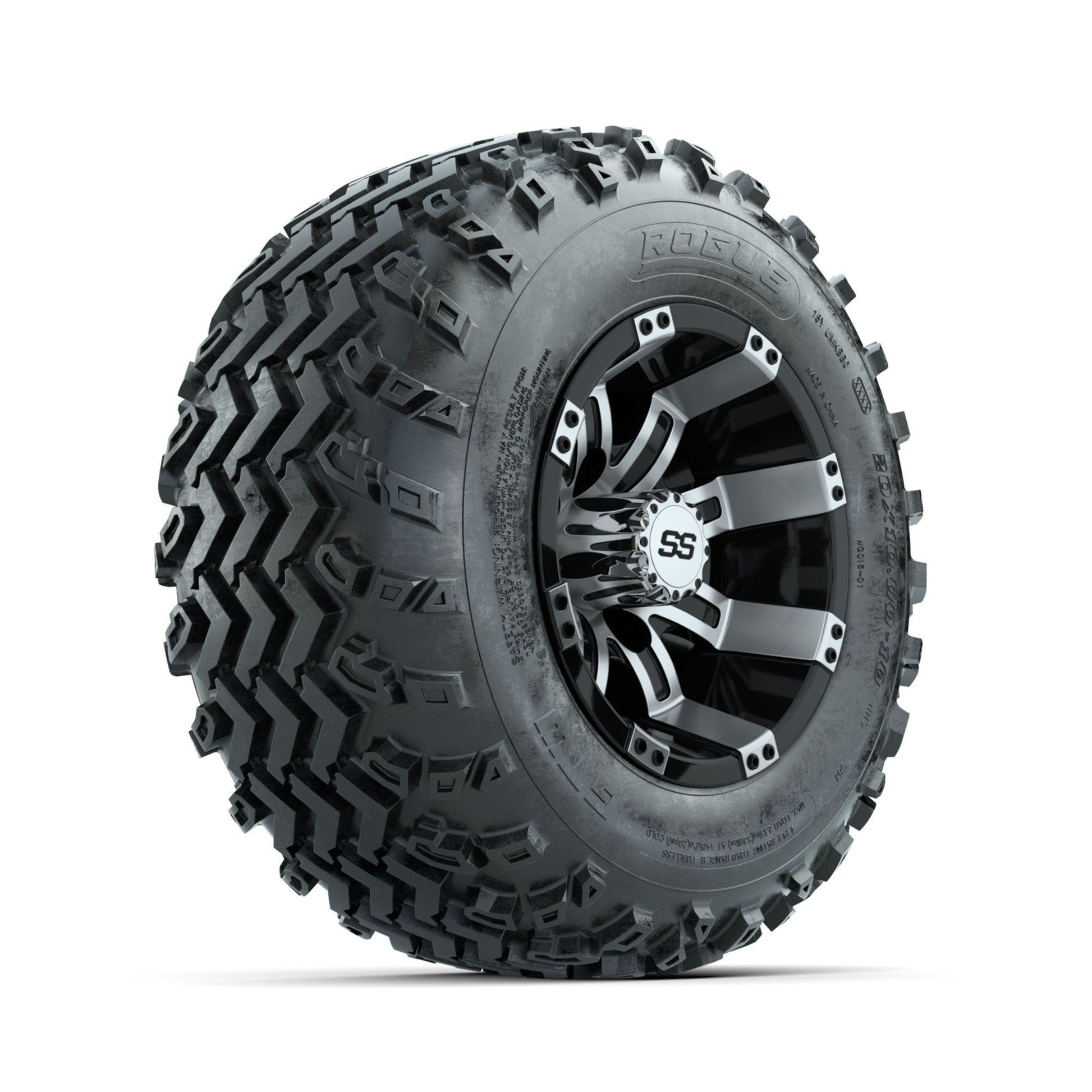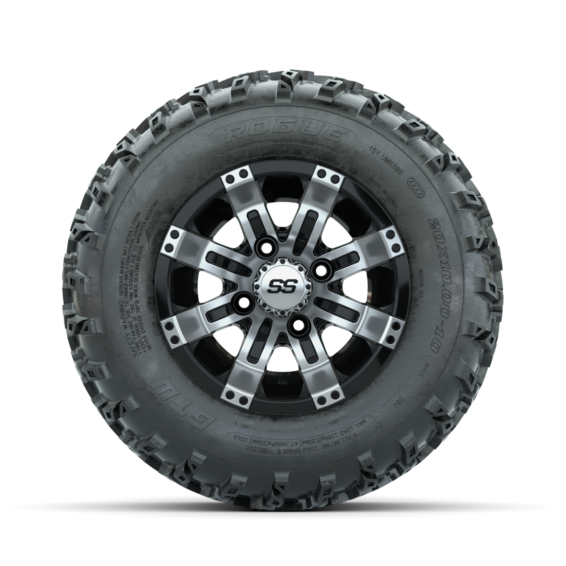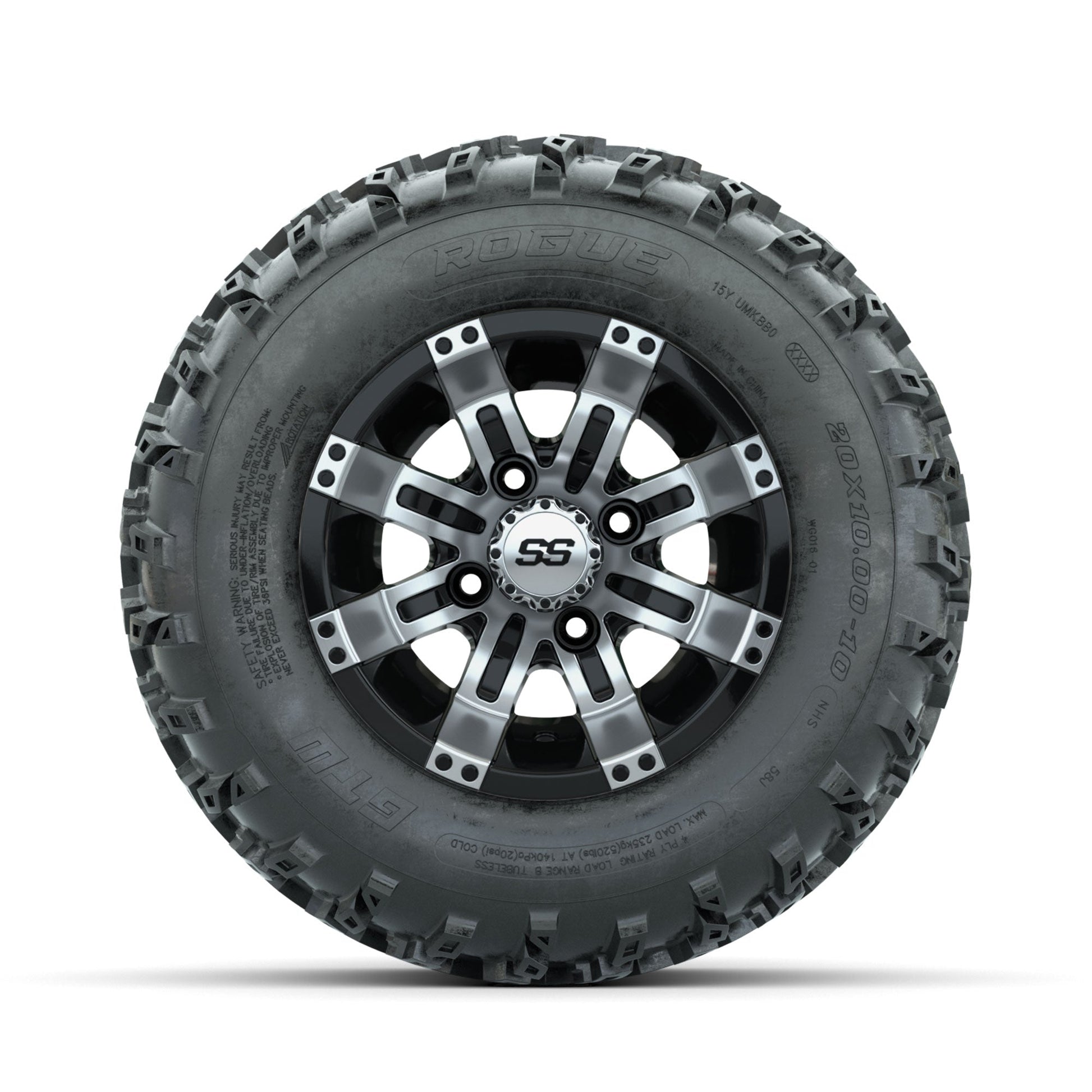 | Product Description: | A set of (4) 10-inch GTW-Tempest Machined/Black golf cart wheels Mounted on 20x10.00-10 Rogue All-Terrain Tires Tread Classification: All-Terrain Full Tire & Wheel Combo Includes: (4) 10x7 GTW-Tempest Wheels / Machined/Black finish / Offset: 3:4 (ET -.25) (4) 20x10.00-10 GTW Rogue All-Terrain Tires / Tire is approx. 20- tall (4-Ply) (4) Center caps Please Note: All Wheels are 4 on 4 Hole / Lug Pattern unless otherwise specified. Tech Tips: We Recommend a Minimum 3- Lift Kit for This Tire & Wheel Combo (Tire is approx. 20- OD) Please Check and Adjust PSI in Tires Before Operation (Recommended Inflation Can Be Found on Sidewall of Tire) Tire & Wheel Combos are mounted and Inflated Before Shipping, Free of Charge All Wheels Have a lug pattern of "4x101.6mm" Lug Nuts Sold Separately: Standard Chrome Lug Nuts #LUG4S Metric Chrome Lug Nuts #LUG4M (Yamaha Models) |