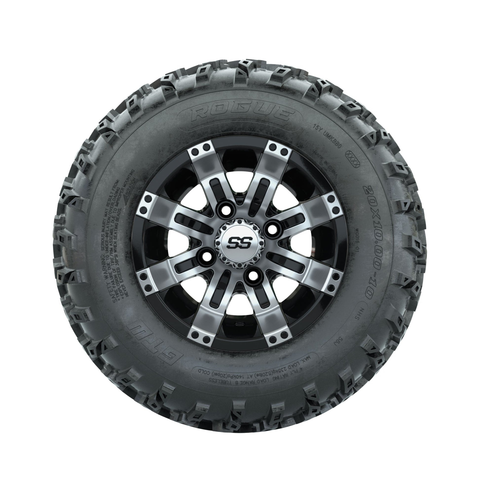 GTW Tempest Machined/Black 10 in Wheels with 20x10.00-10 Rogue All Terrain Tires Full Set
