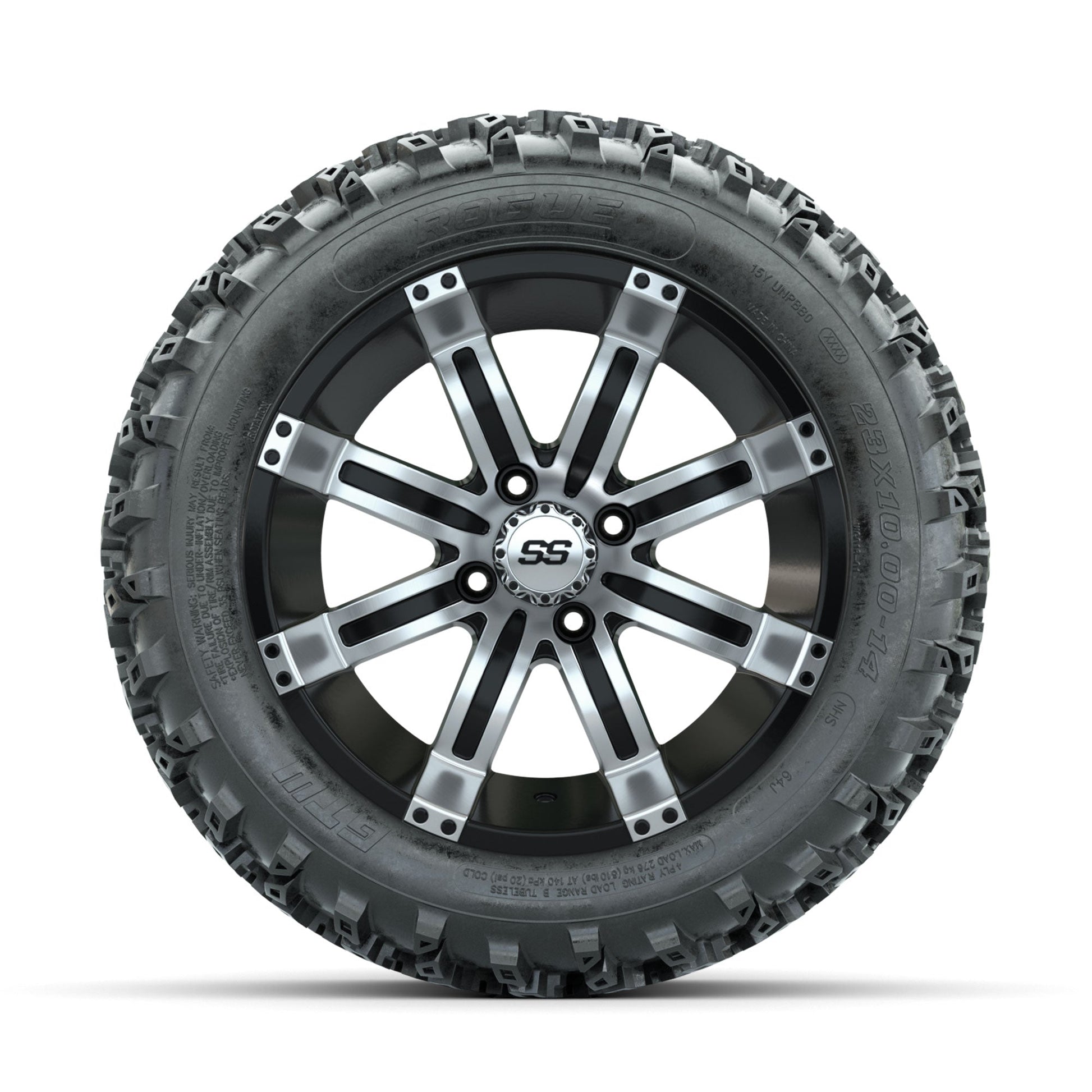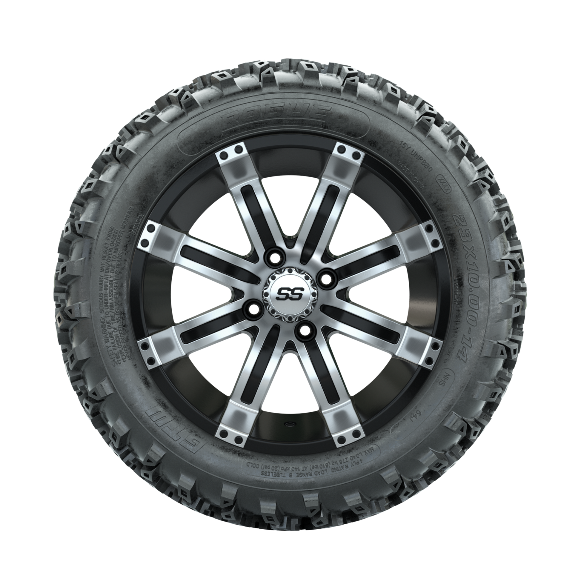 GTW Tempest Machined/Black 14 in Wheels with 23x10.00-14 Rogue All Terrain Tires Full Set