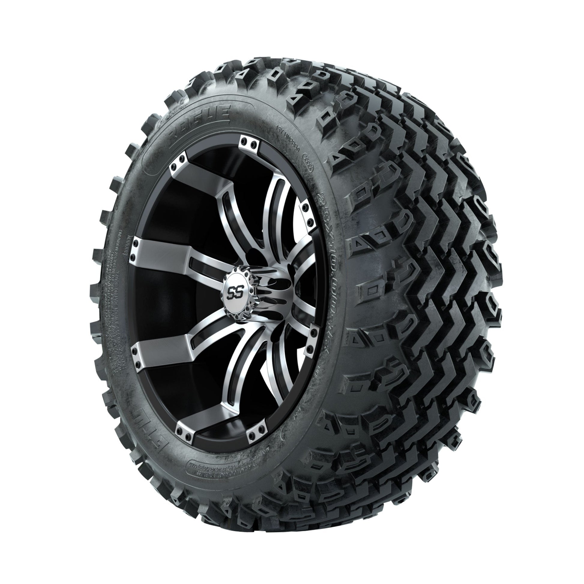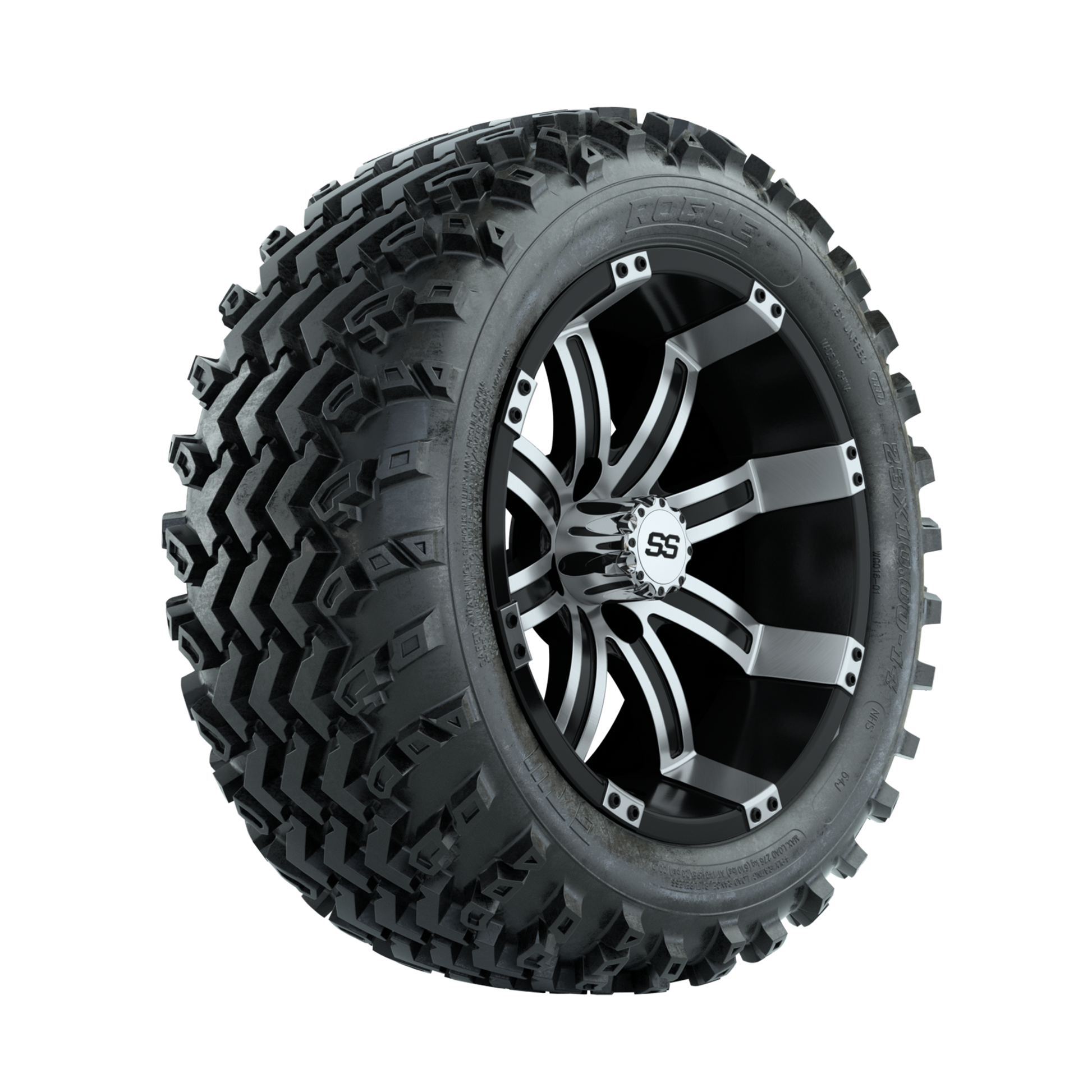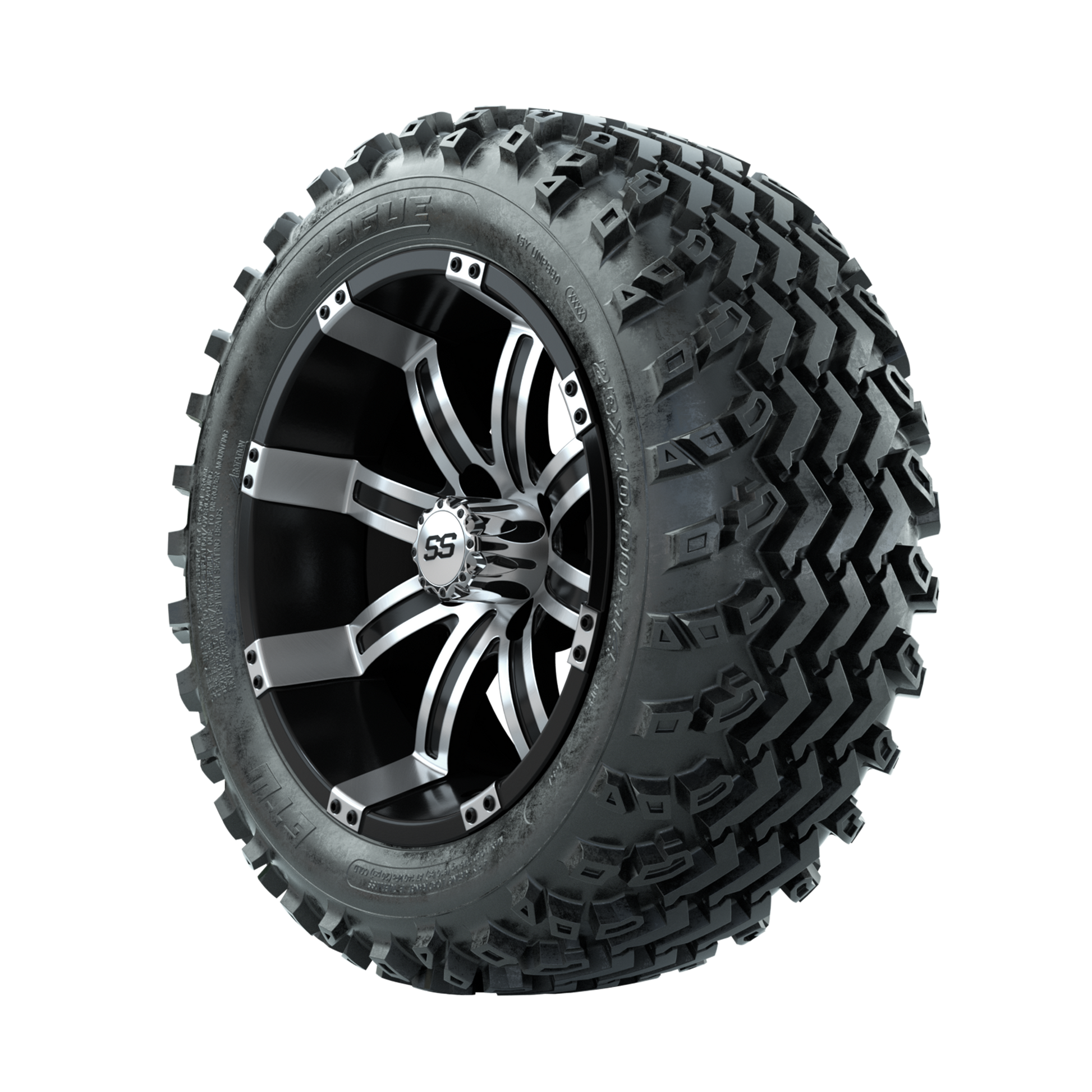 | Product Description: | A set of (4) 14-inch GTW-Tempest Machined/Black golf cart wheels Mounted on 23x10.00-14 Rogue All-Terrain Tires Tread Classification: All-Terrain Full Tire & Wheel Combo Includes: (4) 14x7 GTW-Tempest Wheels / Machined/Black finish / Offset: 3:4 (ET -.25) (4) 23x10.00-14 GTW Rogue All-Terrain Tires / Tire is approx. 23- tall (4-Ply) (4) Center caps Please Note: All Wheels are 4 on 4 Hole / Lug Pattern unless otherwise specified. Tech Tips: We Recommend a Minimum 3- Lift Kit for This Tire & Wheel Combo (Tire is approx. 23- OD) Please Check and Adjust PSI in Tires Before Operation (Recommended Inflation Can Be Found on Sidewall of Tire) Tire & Wheel Combos are mounted and Inflated Before Shipping, Free of Charge All Wheels Have a lug pattern of "4x101.6mm" Lug Nuts Sold Separately: Standard Chrome Lug Nuts #LUG4S Metric Chrome Lug Nuts #LUG4M (Yamaha Models) |