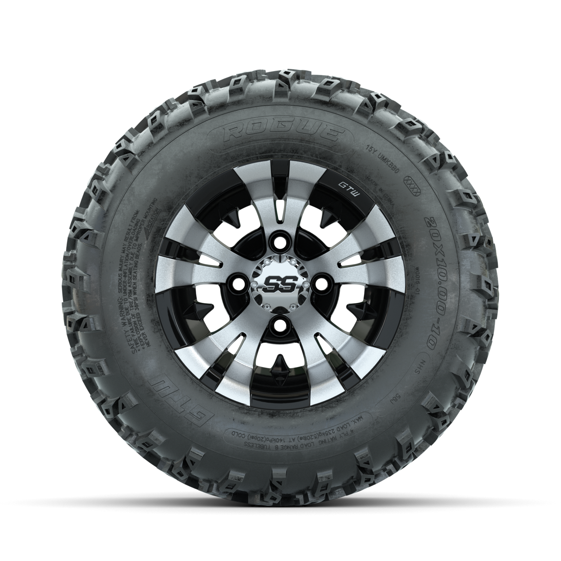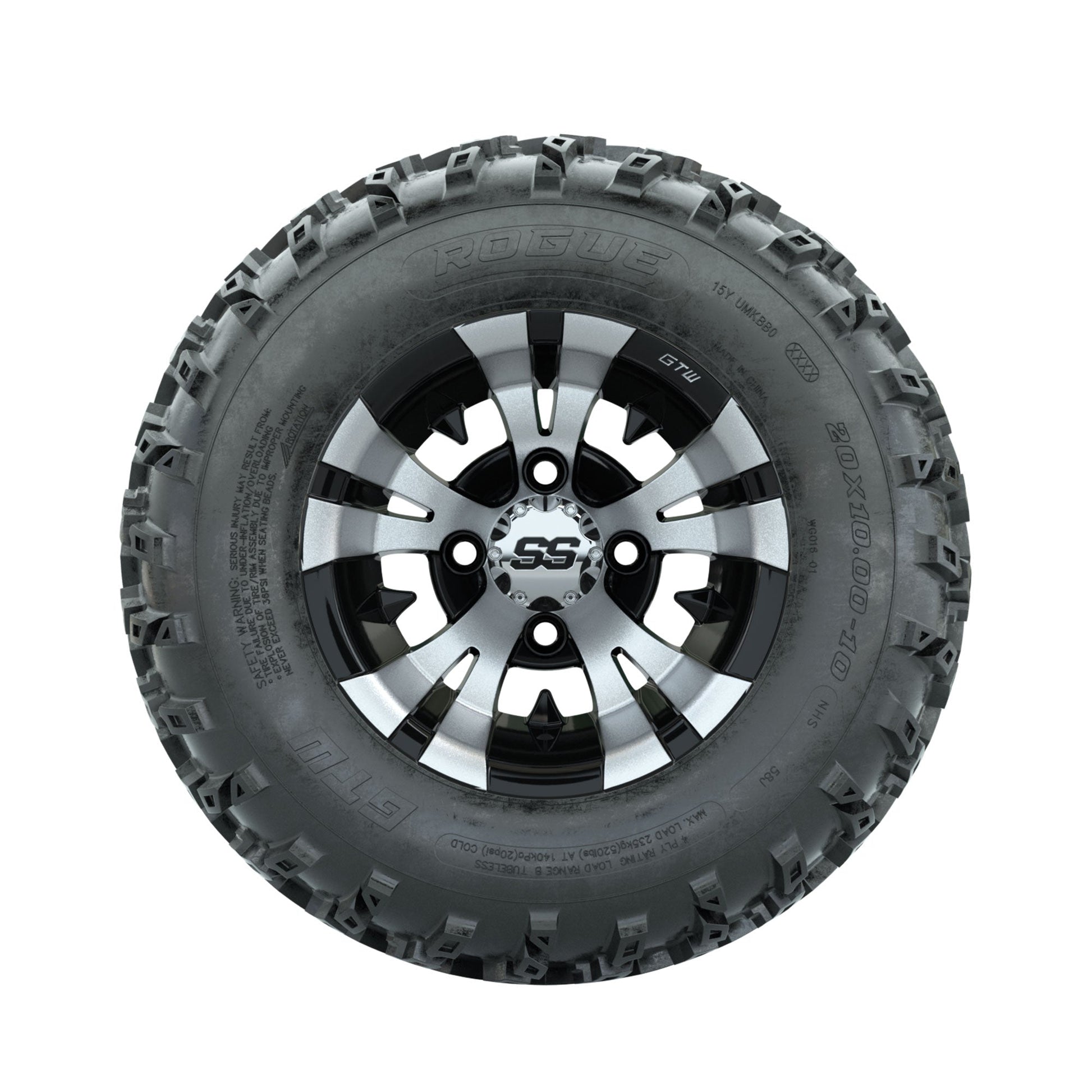 GTW Vampire Machined/Black 10 in Wheels with 20x10.00-10 Rogue All Terrain Tires Full Set