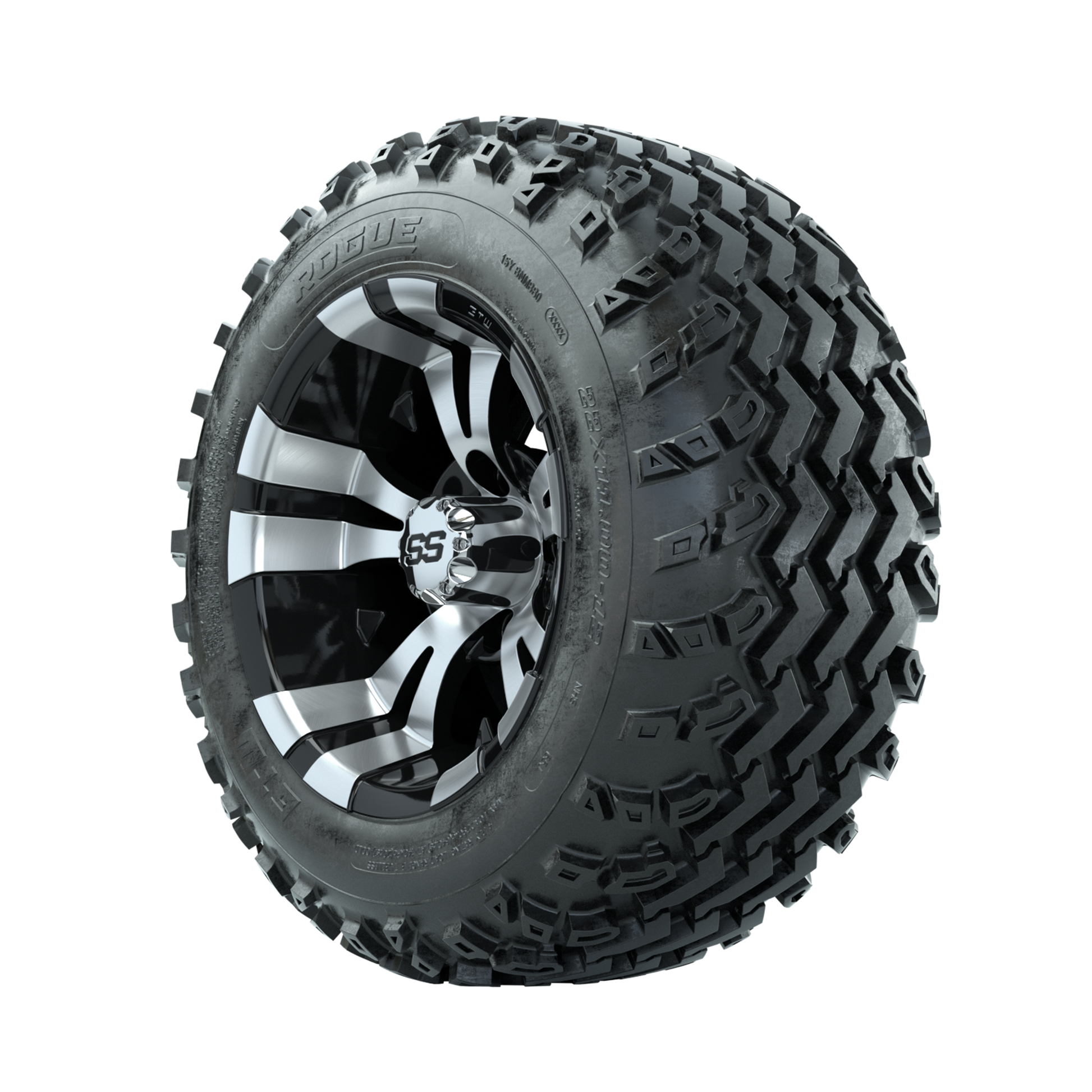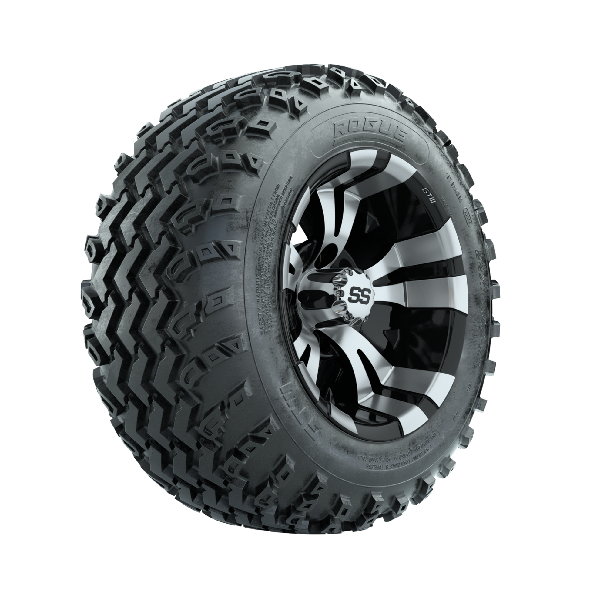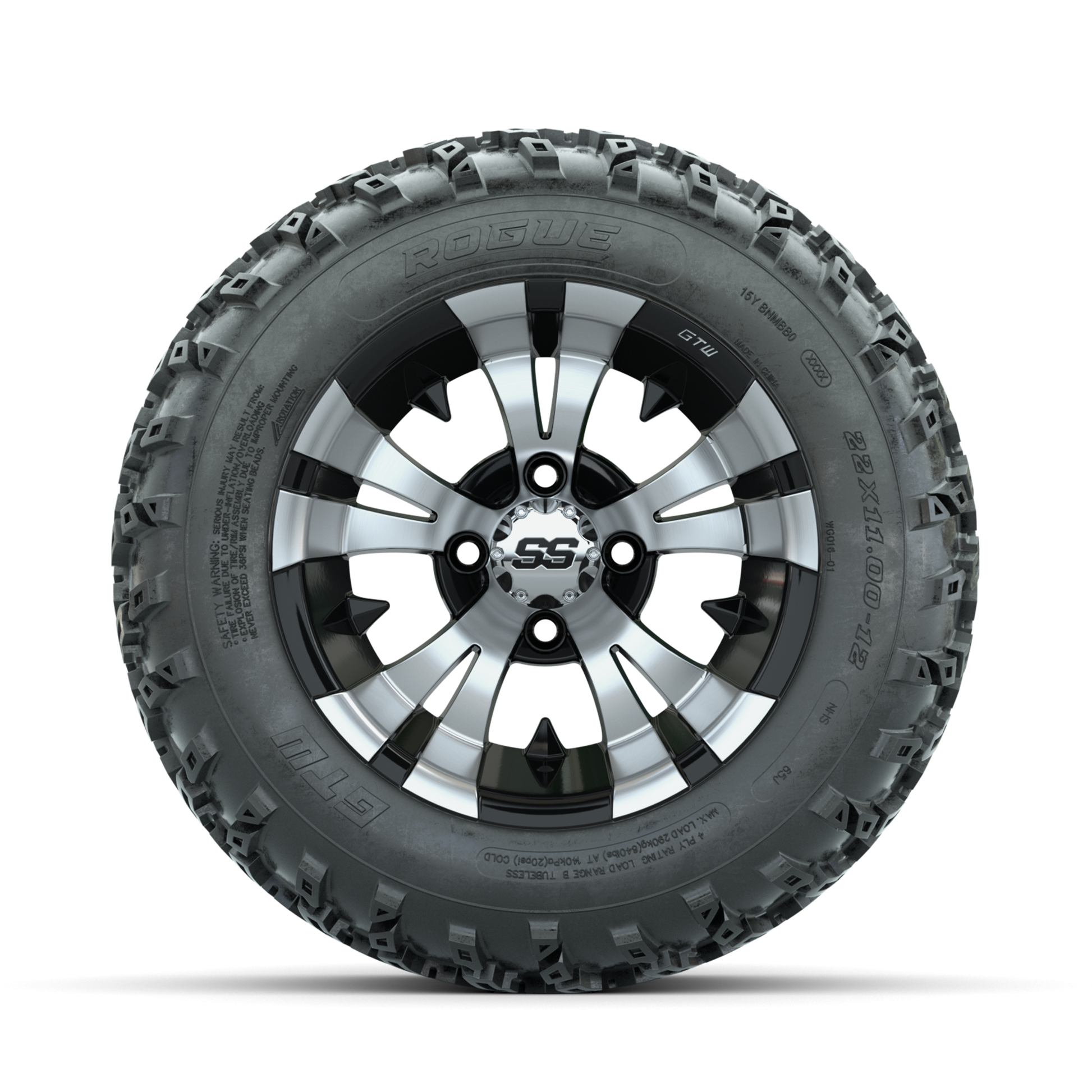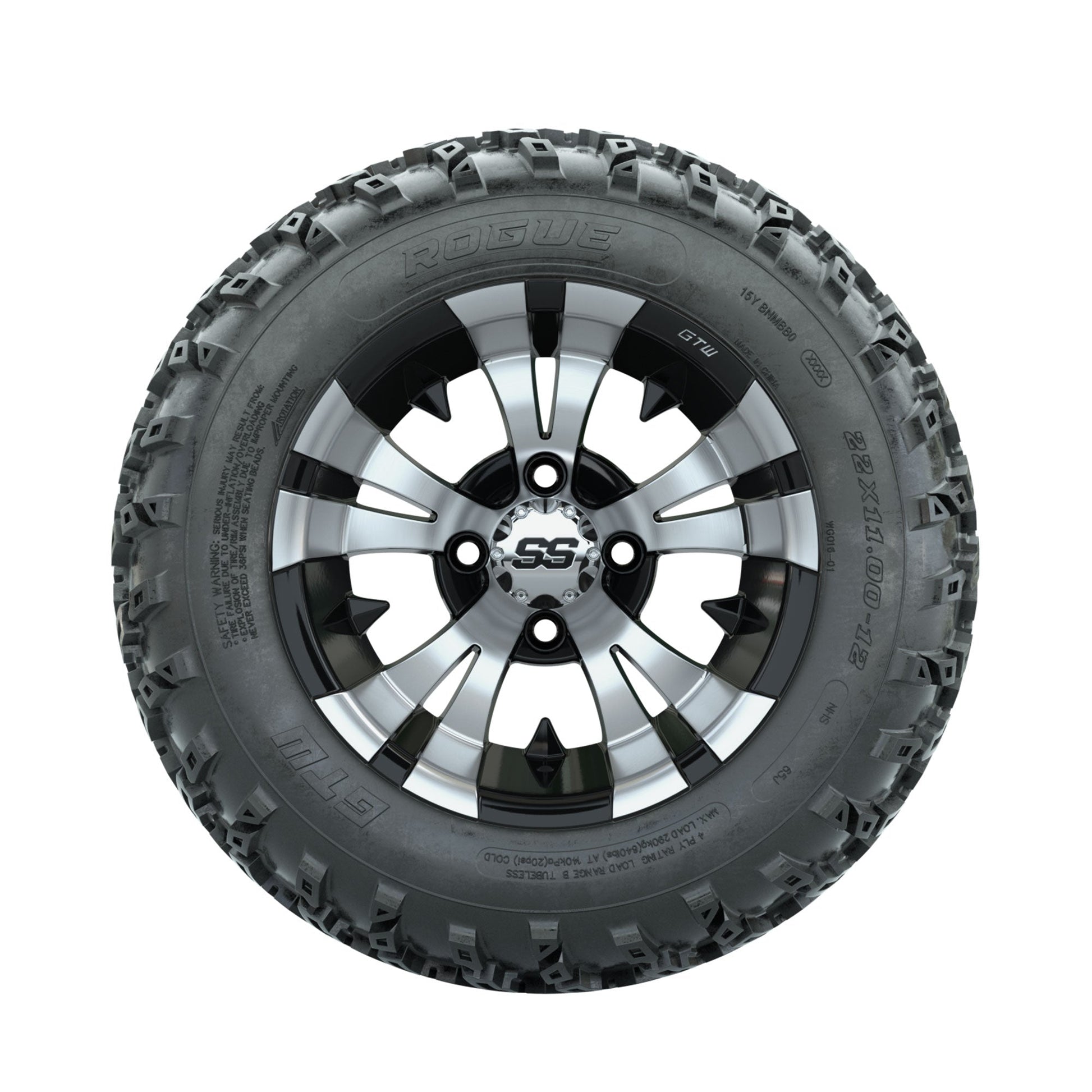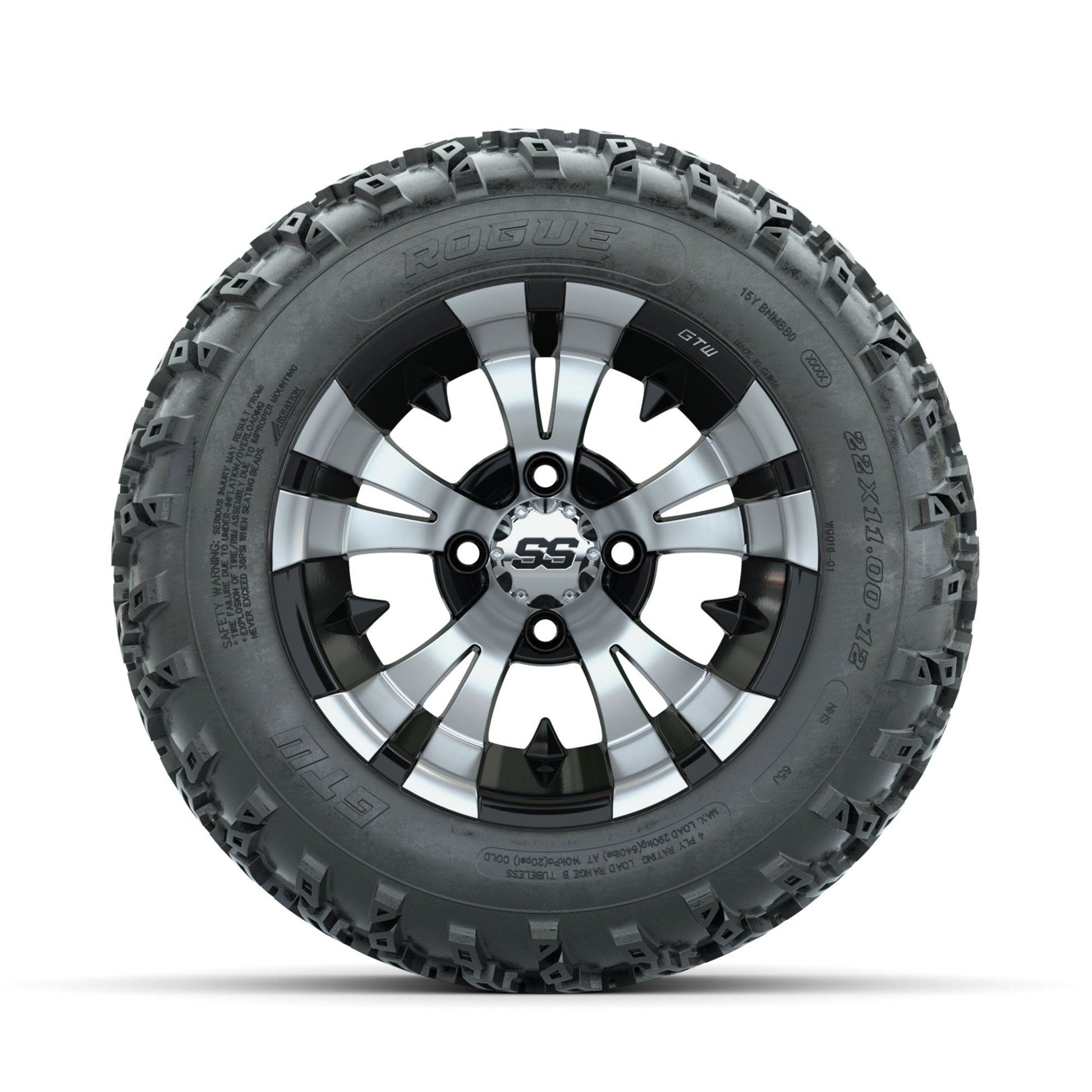 GTW Vampire Machined/Black 12 in Wheels with 22x11.00-12 Rogue All Terrain Tires Full Set