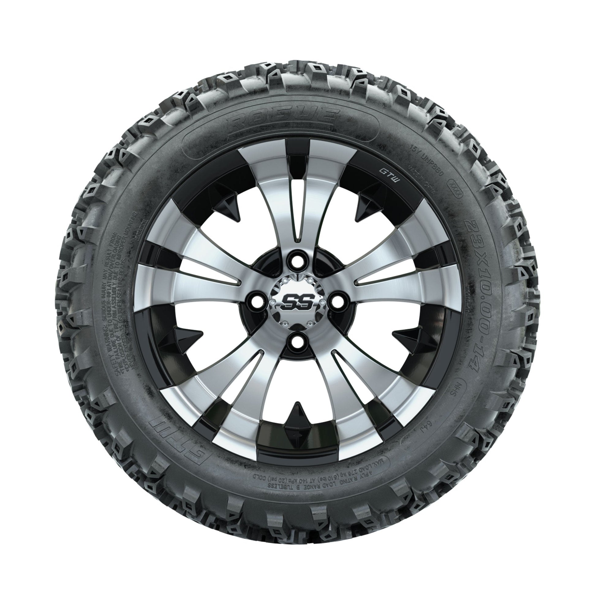 GTW Vampire Machined/Black 14 in Wheels with 23x10.00-14 Rogue All Terrain Tires Full Set