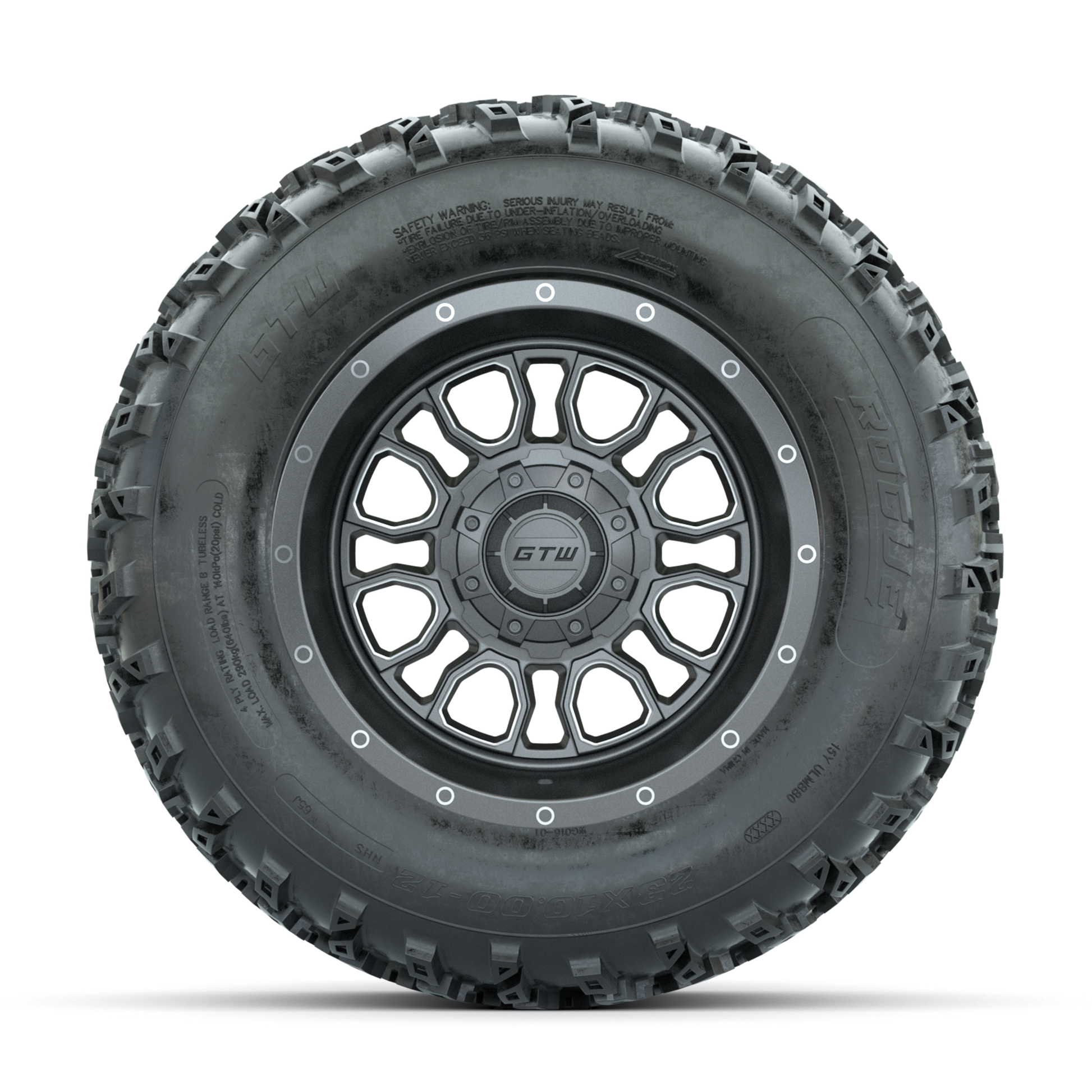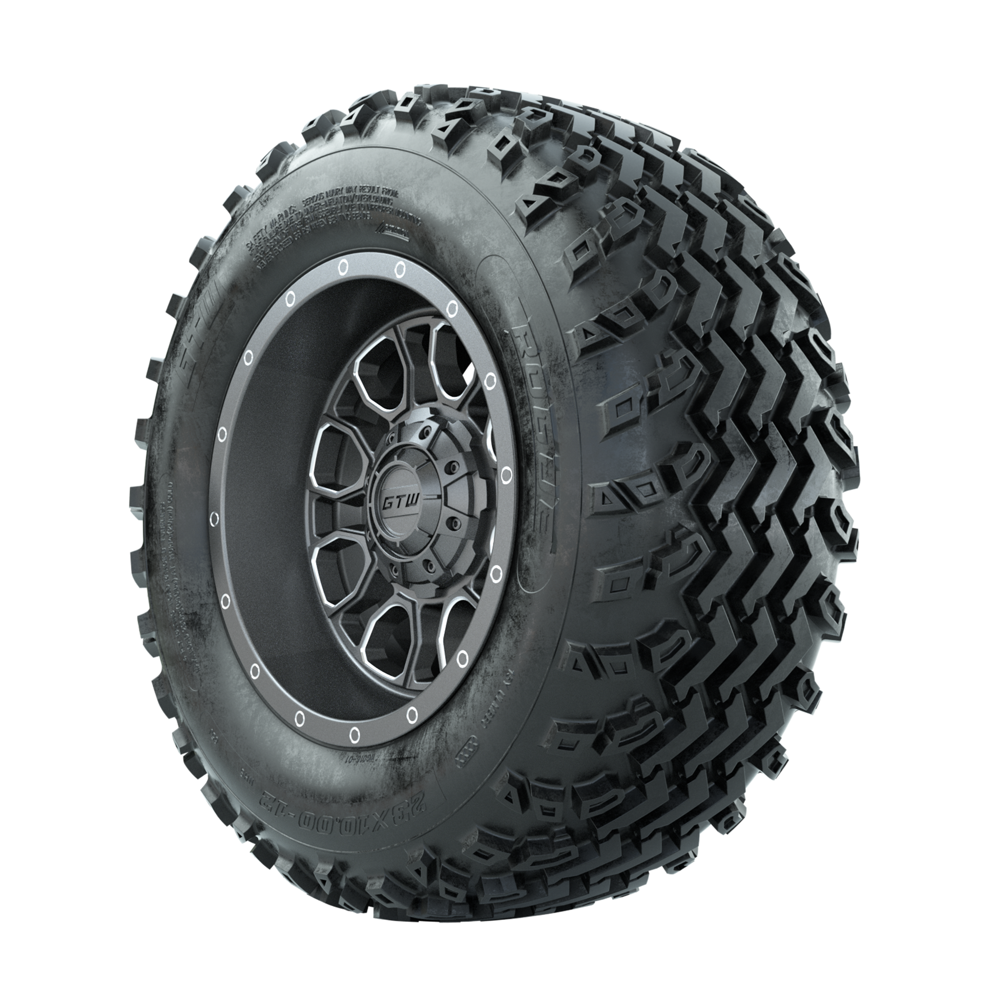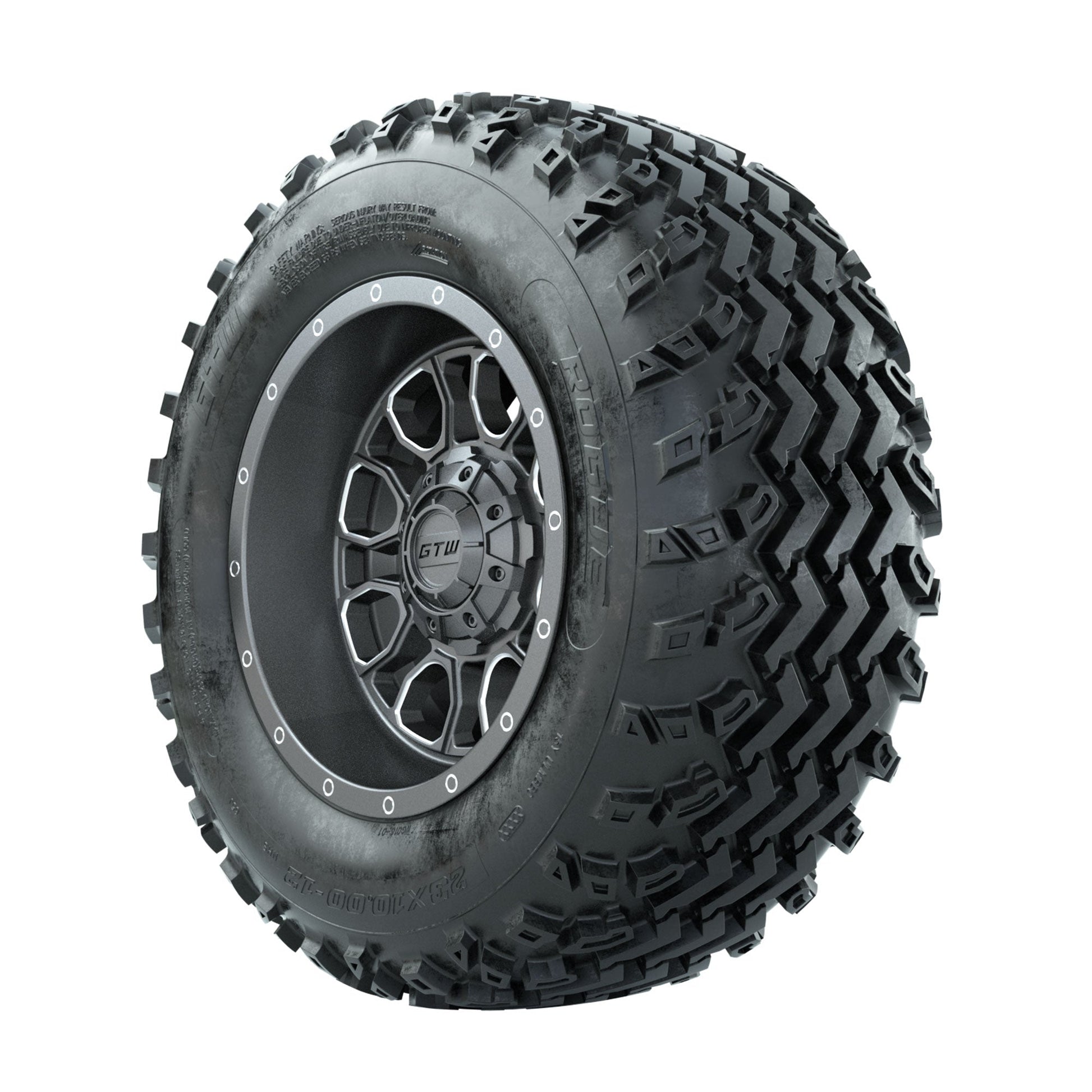 GTW Volt Gunmetal/Machined 12 in Wheels with 23x10.00-12 Rogue All Terrain Tires Full Set