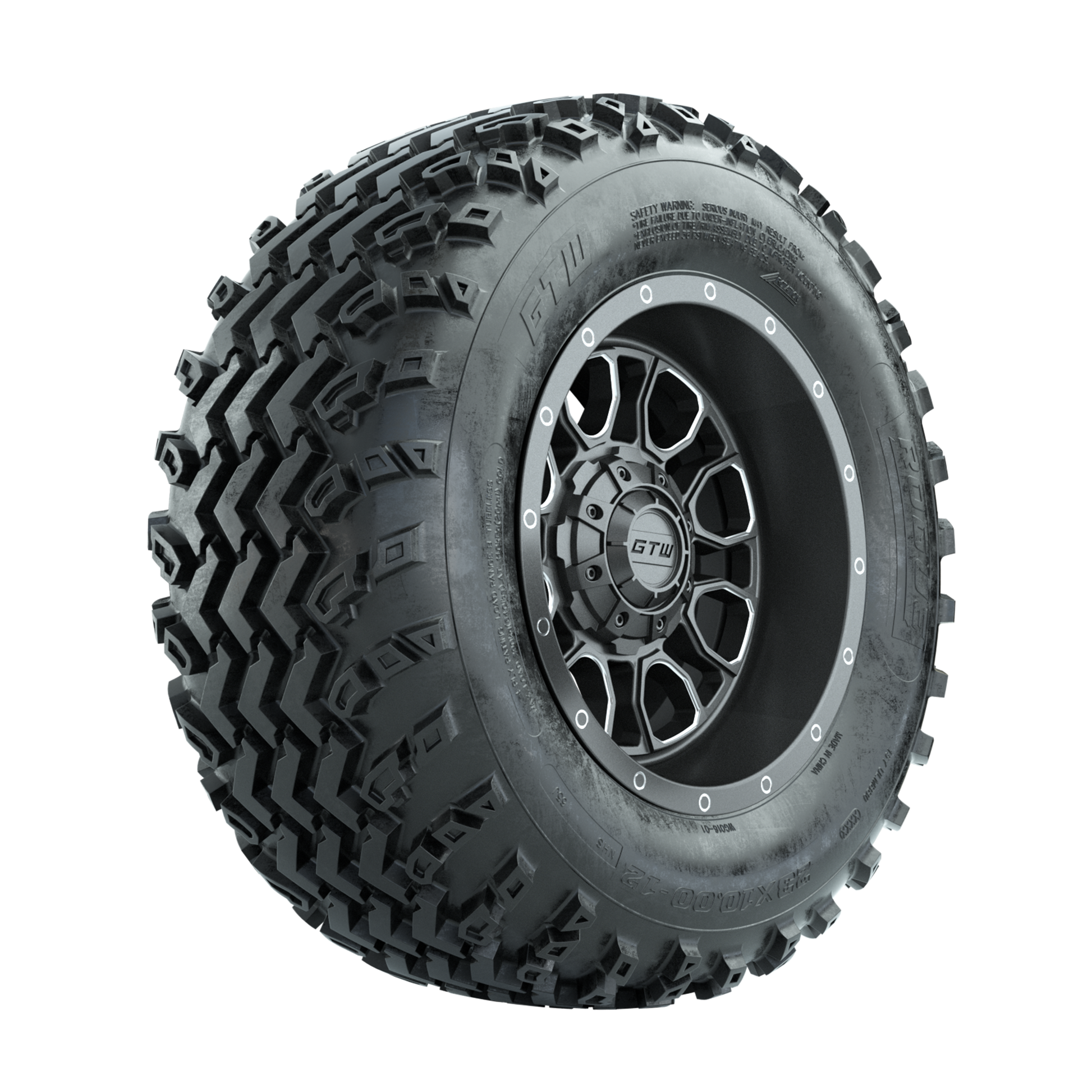 | Product Description: | A set of (4) 12-inch GTW-Volt Gunmetal with Machined Accents golf cart wheels Mounted on 23x10.00-12 Rogue All-Terrain Tires Tread Classification: All-Terrain Full Tire & Wheel Combo Includes: (4) 12x7 GTW-Volt Wheels / Gunmetal finish with Machined Accents / Offset: 3:4 (ET -.25) (4) 23x10.00-12 GTW Rogue All-Terrain Tires / Tire is approx. 23- tall (4-Ply) (4) Center caps Please Note: All Wheels are 4 on 4 Hole / Lug Pattern unless otherwise specified. Tech Tips: We Recommend a Minimum 3- Lift Kit for This Tire & Wheel Combo (Tire is approx. 23- OD) Please Check and Adjust PSI in Tires Before Operation (Recommended Inflation Can Be Found on Sidewall of Tire) Tire & Wheel Combos are mounted and Inflated Before Shipping, Free of Charge All Wheels Have a lug pattern of "4x101.6mm" Lug Nuts Sold Separately: Standard Chrome Lug Nuts #LUG4S Metric Chrome Lug Nuts #LUG4M (Yamaha Models) |