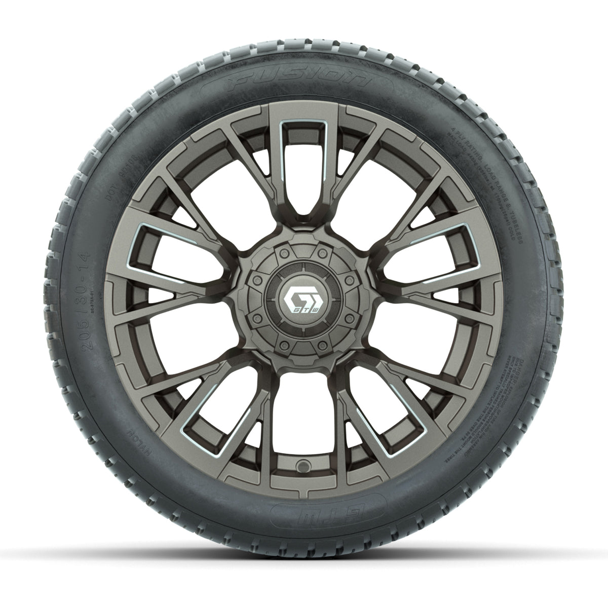 GTW® Vandal Satin Bronze/Machined 14 in Wheels with 205/30-14 Fusion Street Tires Full Set