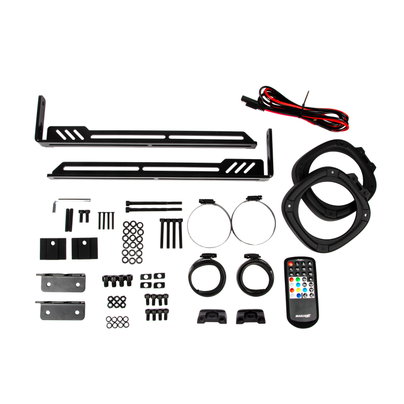 The MadJax soundbar comes with everything you need for a clean, professional installation on EZGO, Club Car, and Yamaha golf carts. Mounting brackets allow for flexible positioning, and the integrated wiring harness with quick-disconnect plug makes setup straightforward. Hard-wire power connection required (connects to your cart's 12V system).