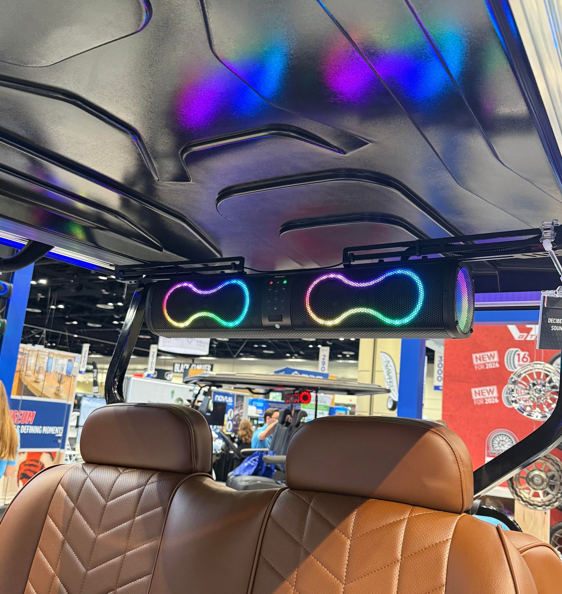 Transform your golf cart into a mobile entertainment system. The MadJax Decibel Audio soundbar delivers premium 500-watt sound with dynamic RGB lighting that syncs to your music. Whether you're cruising the course, neighborhood, or campground, enjoy deep bass, crystal-clear audio, and a customizable light show—all in a rugged, weather-resistant package designed for golf carts.