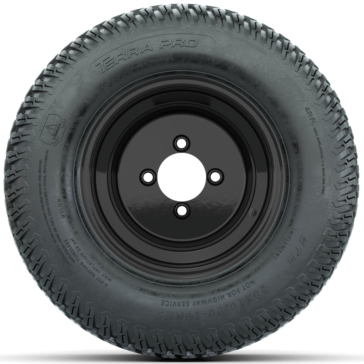| Product Description: | Tread Classification: Street/Turf/Course Full kit includes: (4) 10x8 Matte Black Steel Wheels (3:5 Offset) (4) 20x10-10 GTW S-Tread Terra Pro Traction Tires (4-Ply) Reuse Stock Lug Nuts Please Note: All Wheels are 4 on 4 Hole / Lug Pattern unless otherwise specified. Tech Tips: This Tire & Wheel Combo Does Not Require a Lift Kit Tire & Wheel Combos are mounted and Inflated Before Shipping, Free of Charge Please Check and Adjust PSI in Tires Before Operation (Recommended Inflation Can Be Found on Sidewall of Tire) All Wheels Have a lug pattern of "4x101.6mm" Lug Nuts Sold Separately: Standard: #LUG4S (Standard Chrome Lug Nuts) Metric: #LUG4M (Yamaha Models) |