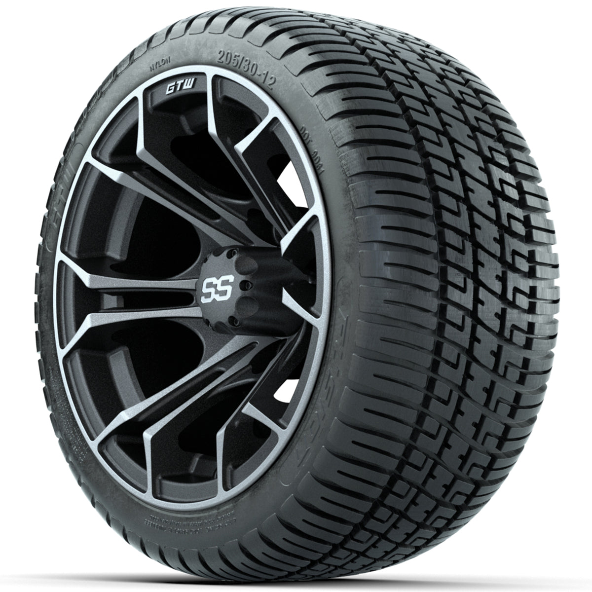 Set of (4) 12 in GTW Spyder Wheels with 205/30-12 GTW Fusion Street Tires