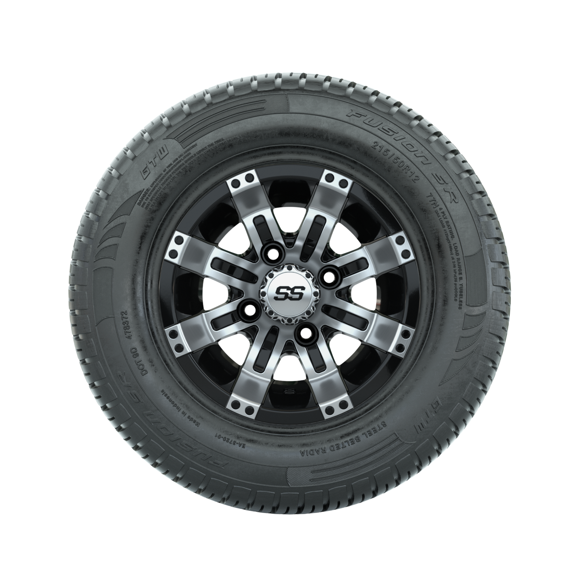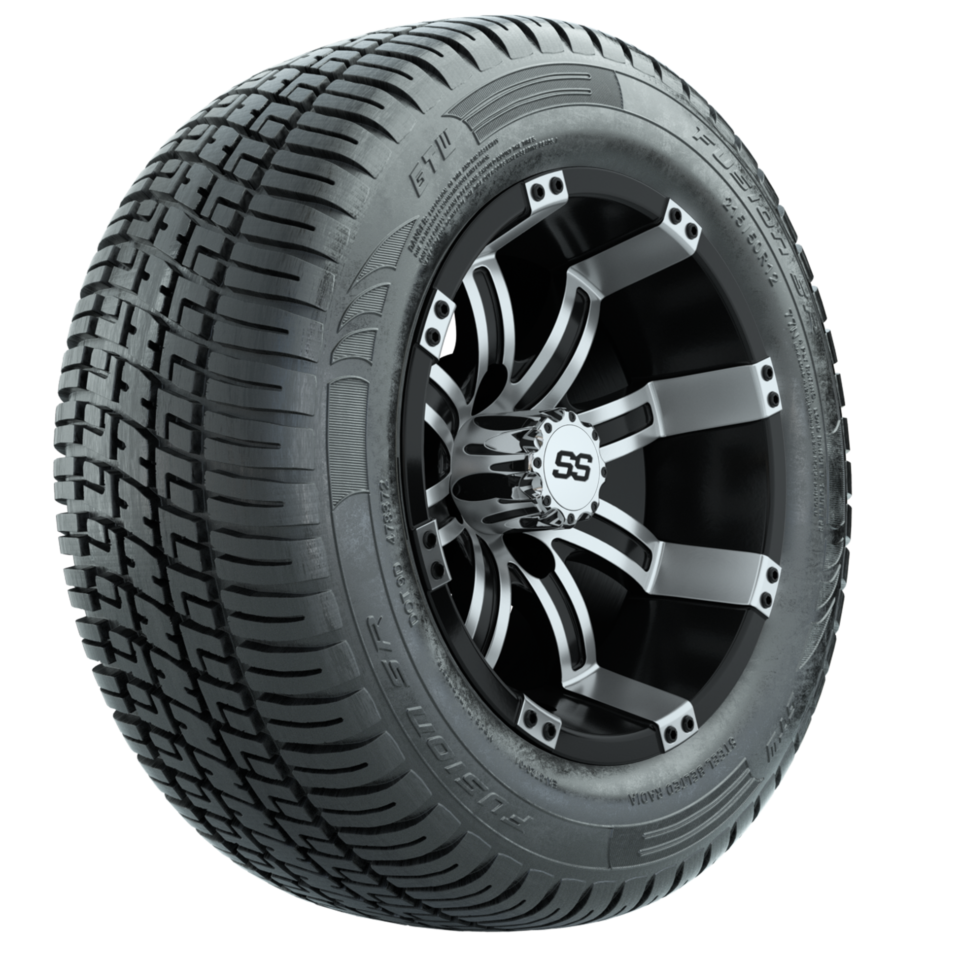 | Product Description: | Tread Classification: Street/Course/Turf Full kit includes: (4) 12x7 GTW Tempest Wheels / Machined & Black Finish / Offset: 3:4 (ET -.25) (4) 215/50-R12 GTW Fusion S/R Street Tires / Tire is approx. 20- tall (4-Ply) (4) Center Caps Please Note: All Wheels are 4 on 4 Hole / Lug Pattern unless otherwise specified. Tech Tips: This Tire & Wheel Combo Does Not Require a Lift Kit Tire & Wheel Combos are mounted and Inflated Before Shipping, Free of Charge Please Check and Adjust PSI in Tires Before Operation (Recommended Inflation Can Be Found on Sidewall of Tire) All Wheels Have a lug pattern of "4x101.6mm" Lug Nuts Sold Separately: Standard: #LUG4S (Standard Chrome Lug Nuts) Metric: #LUG4M (Yamaha Models) Non-Lifted Club Car Precedent / Onward / Tempo require a low pro lift kit for any 12- or larger low-profile street tire combos - #95560 Jake-s or #16-013 MadJax Lo Pro Lift (*both sold separately) |
