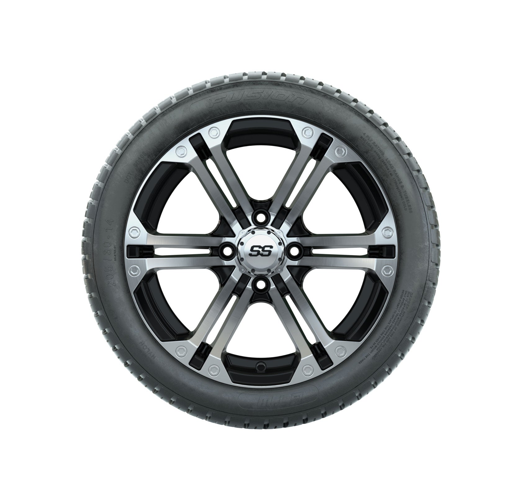 | Product Description: | Set of (4) 14" GTW-Machined/Black Specter Wheels On Lo-Pro Tires Tread Classification: Street / Course Full kit includes: (4) 14x7 Machined/Black Specter Wheels / Offset: 3:4 (ET -.25) (4) 205/30-14 GTW-Fusion Street Tire (4-Ply) (4) GTW-center caps Tech Tips: This Tire & Wheel Combo Requires a Lift Kit Tire & Wheel Combos are mounted and Inflated Before Shipping, Free of Charge Please Check and Adjust PSI in Tires Before Operation (Recommended Inflation Can Be Found on Sidewall of Tire) All Wheels Have a lug pattern of "4x101.6mm" Lug Nuts Sold Separately: Standard: #LUG4S (Standard Chrome Lug Nuts) Metric: #LUG4M (Yamaha Models) Club Car Precedent / Onward / Tempo require a low pro lift kit for any 12- or larger TWA combos - #95560 Jake-s or #16-013 MadJax Lo Pro Lift (*both sold separately) |