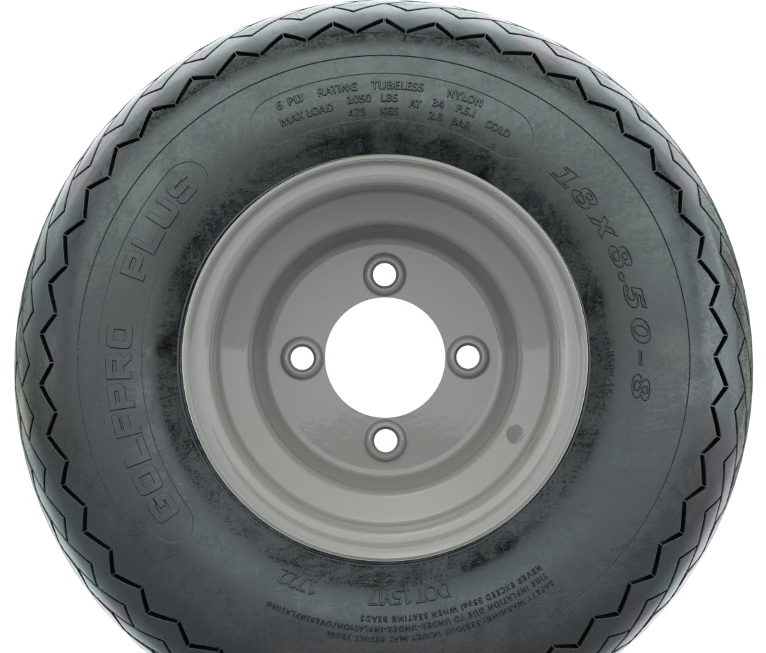 | Product Description: | Tread Classification: Street/Turf/Course Full kit includes: (4) 8x7 Gray Steel Wheels / Centered (No Offset) / Matches Club Car Gray Stock Color Wheel (4) 18x8.5-8 Golf Pro Plus Sawtooth Tires (6-Ply) Reuse Stock Lugs Please Note: All Wheels are 4 on 4 Hole / Lug Pattern unless otherwise specified. Tech Tips: This Tire & Wheel Combo Does Not Require a Lift Kit Tire & Wheel Combos are mounted and Inflated Before Shipping, Free of Charge Please Check and Adjust PSI in Tires Before Operation (Recommended Inflation Can Be Found on Sidewall of Tire) All Wheels Have a lug pattern of "4x101.6mm" |