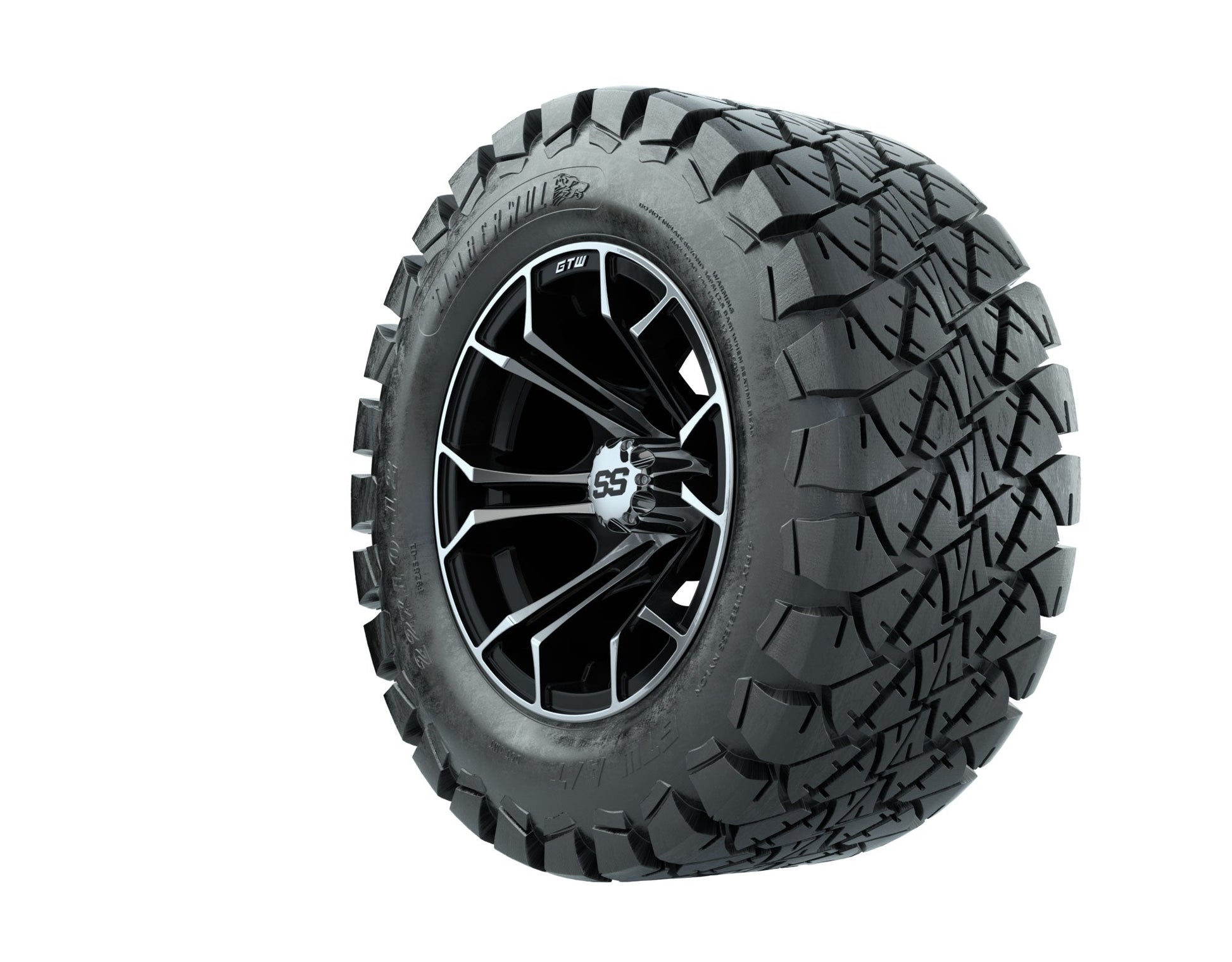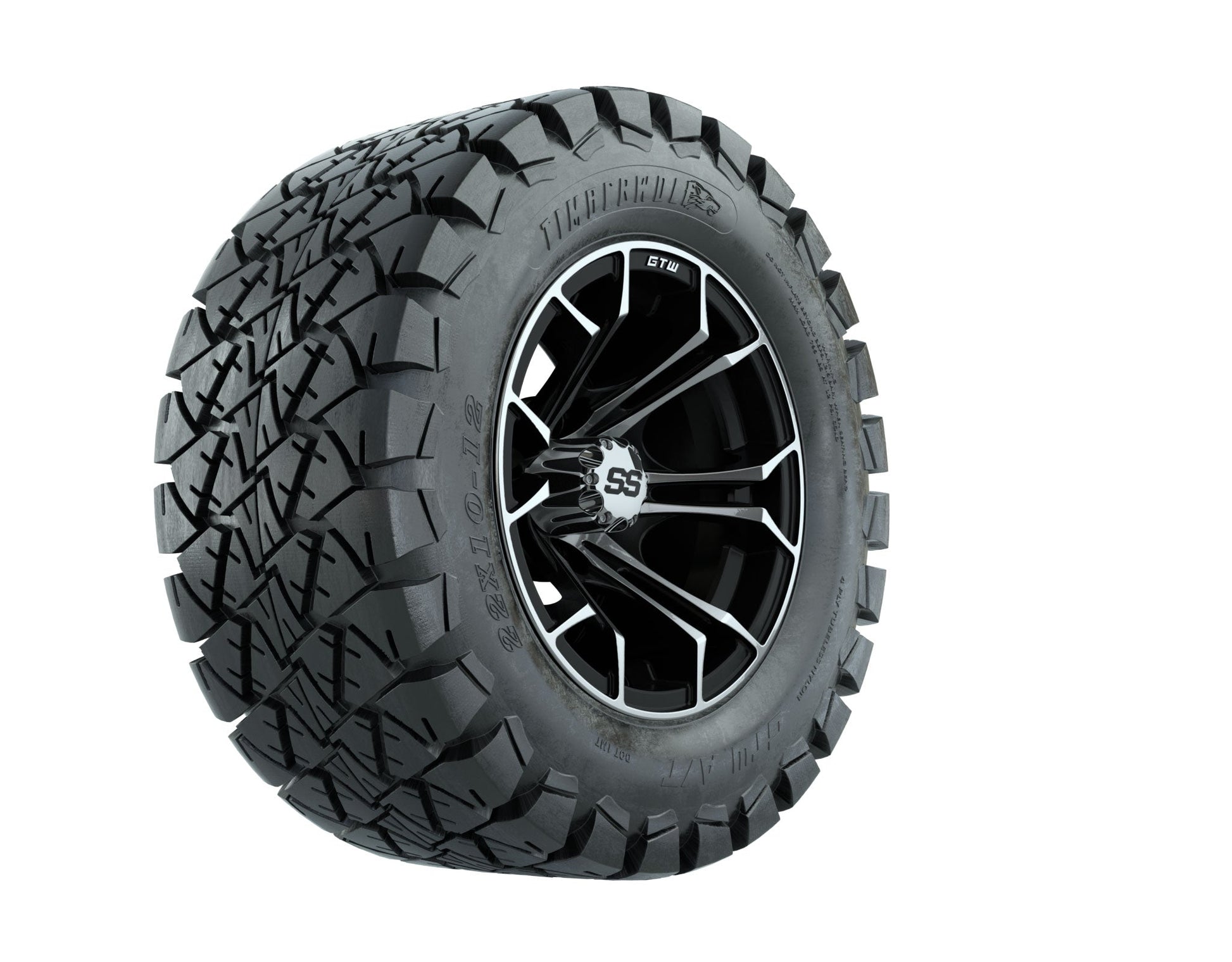 Set of 4 GTW 12in Spyder Black and Machined Wheels with 22in Timberwolf Mud Tires