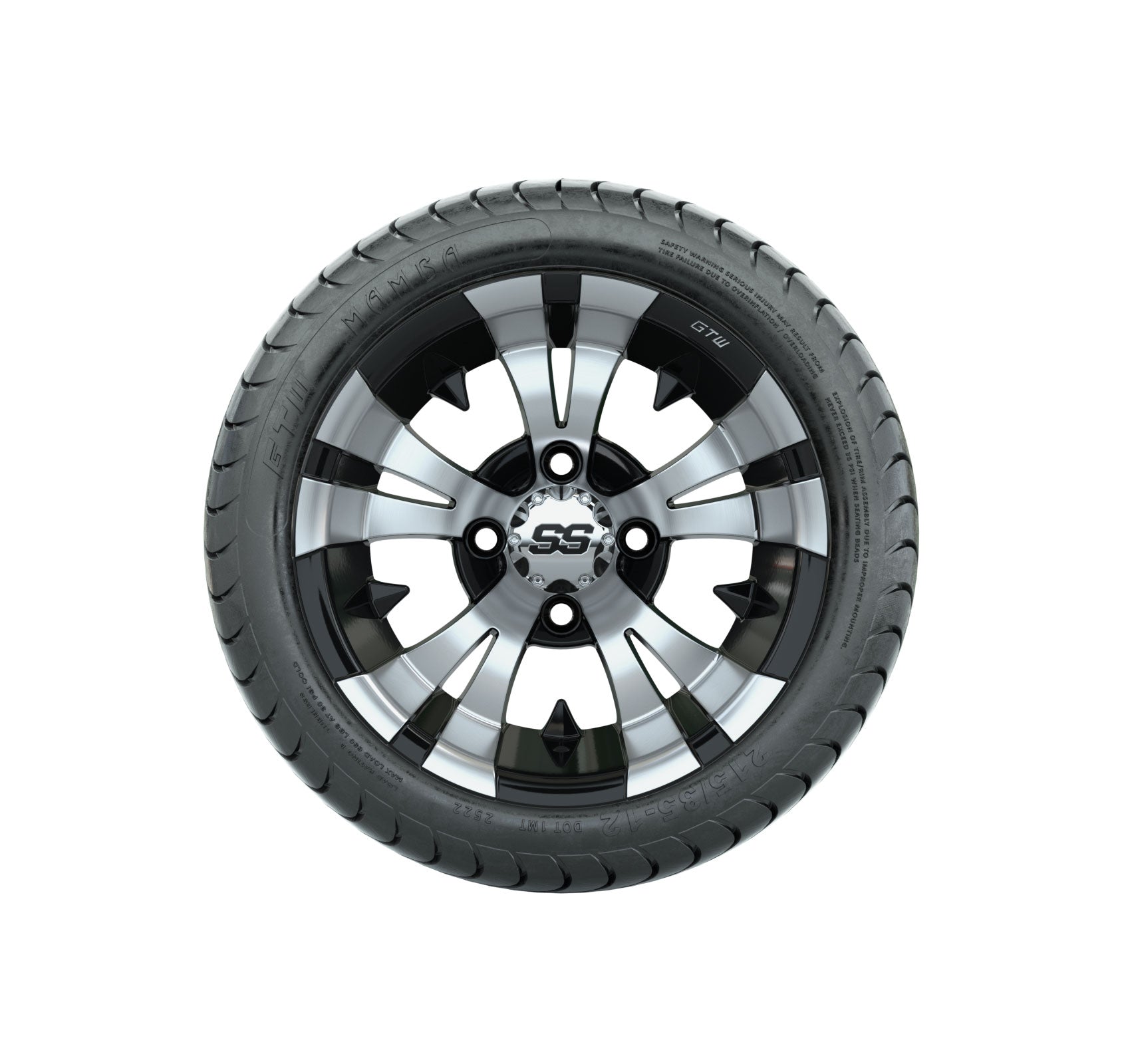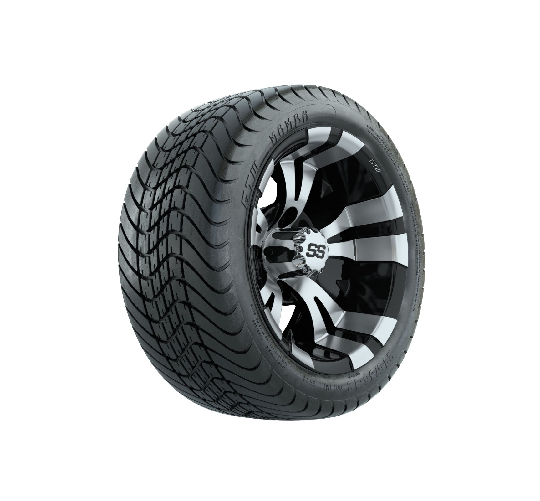 Set of 4 GTW 12in Vampire Black and Machined Wheels with 18in DOT Approved Mamba Street Tires