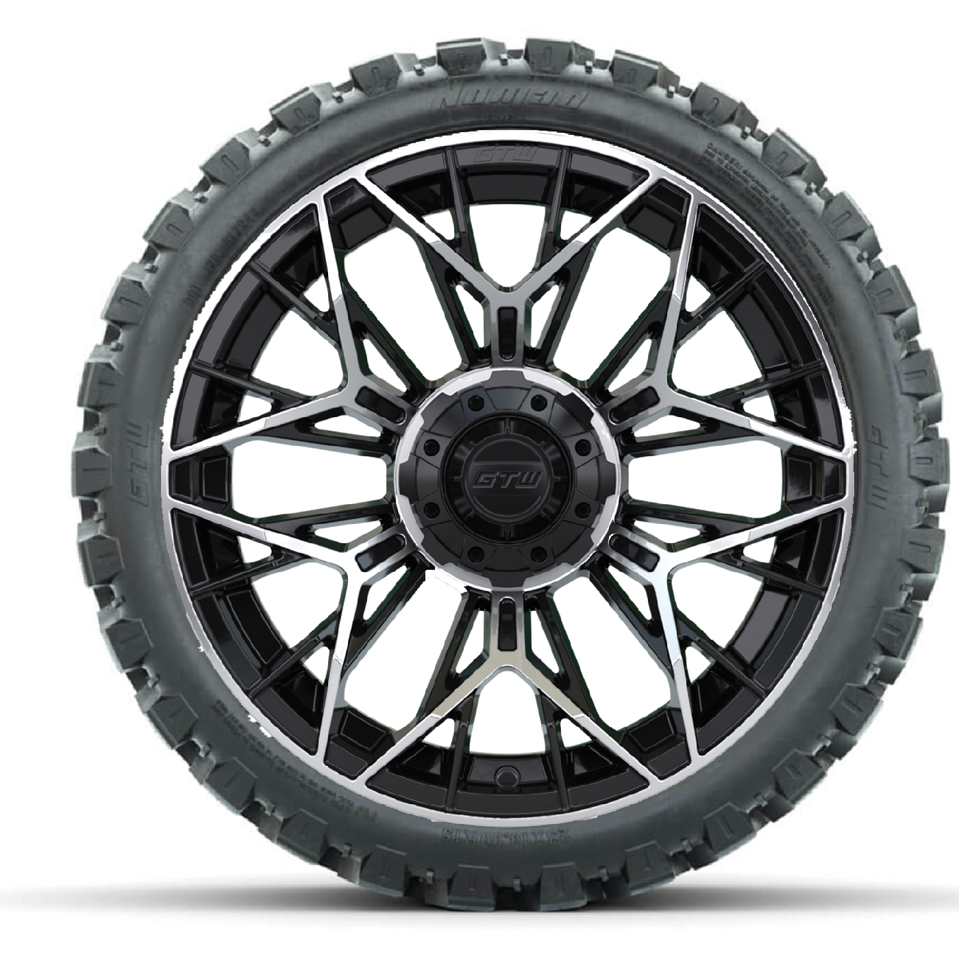 Set of 4 GTW 15" Stellar Machined Black Golf Cart Wheels on 23" Nomad A/T Tires