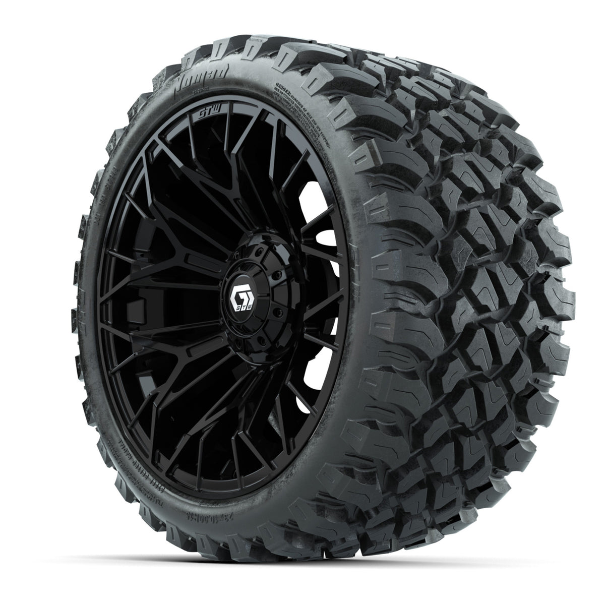 Set of 4 GTW 15" Stellar Matte Black Golf Cart Wheels on 23" Nomad A/T Tires