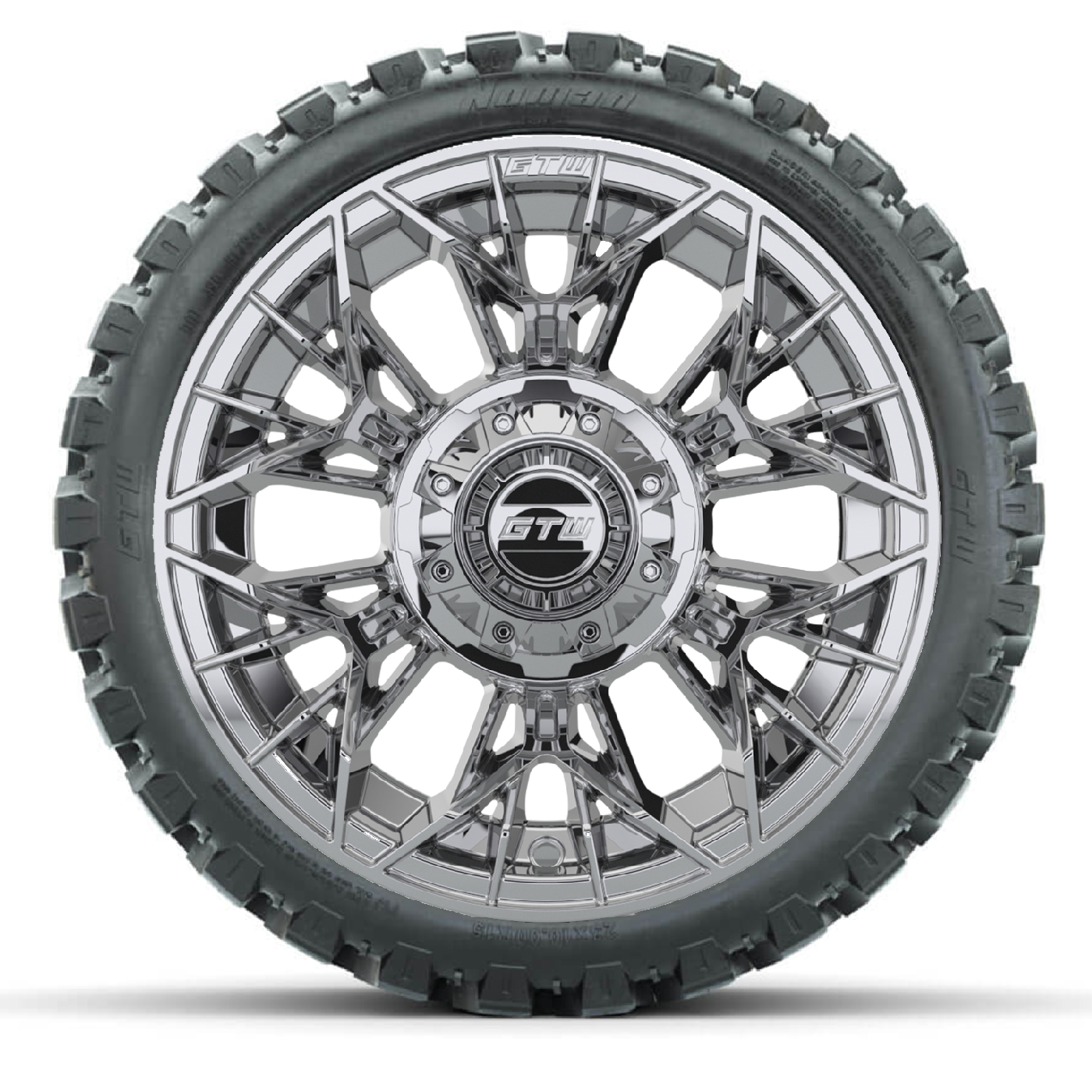 Set of 4 GTW 15" Stellar ALL CHROME Golf Cart Wheels on 23" Nomad A/T Tires