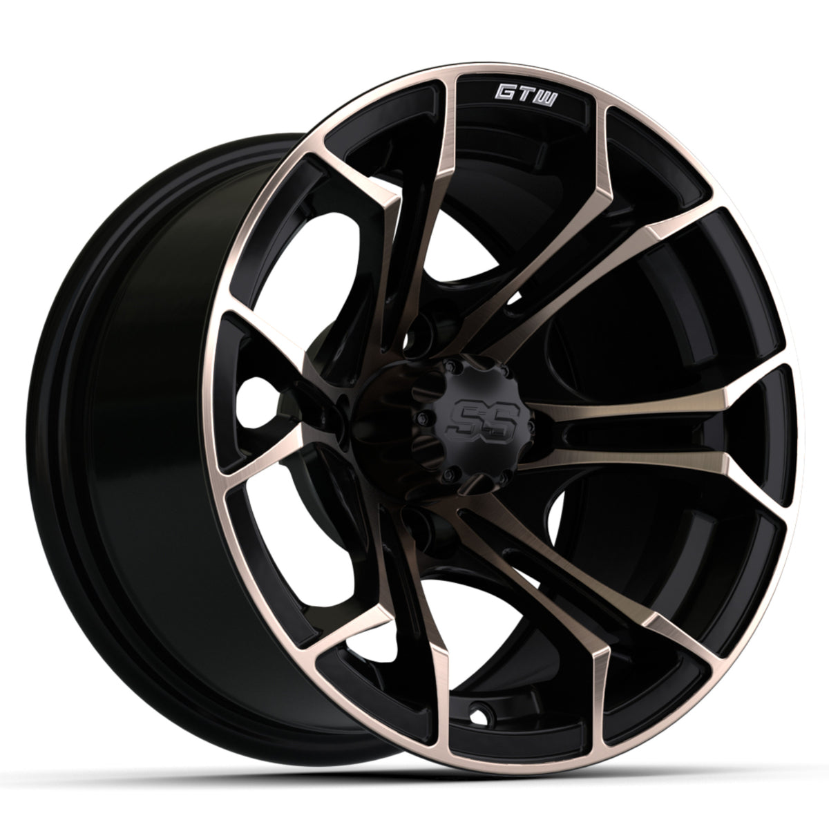 The latest Spyder wheel in the GTW® line can be clearly distinguished from the many other golf car wheels on the market. The Spyder is a GTW® Exclusive design and features a sharp Y-spoke design with red, blue or machined accents, striking sharp angles, deep concave profile, and dynamically-chamfered outer edge.
