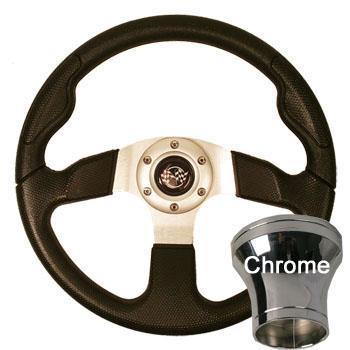 13.5" Black Sport Style Steering Wheel and Chrome Adaptor Kit